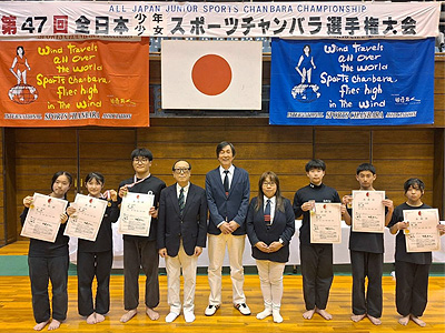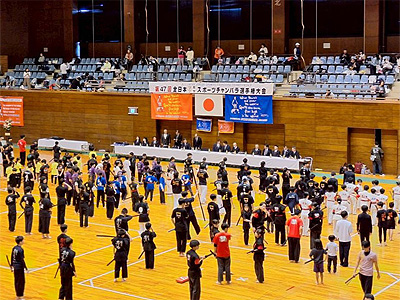 クラブ団体戦打突優勝 大阪蒼龍館SC、細川先生、磯上先生、浦川先生、基本動作優勝 高砂武蔵SC